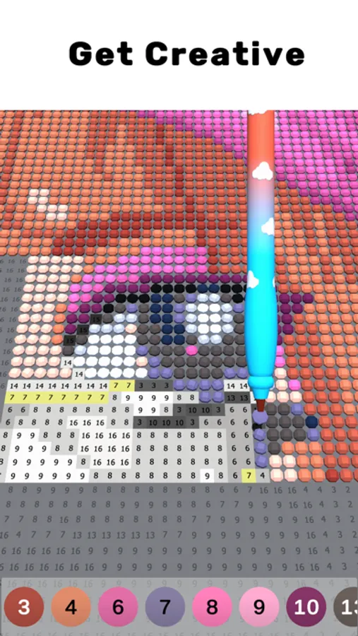 Pick your favorite image. Click it, then drag the special pen to the desired number to begin painting.