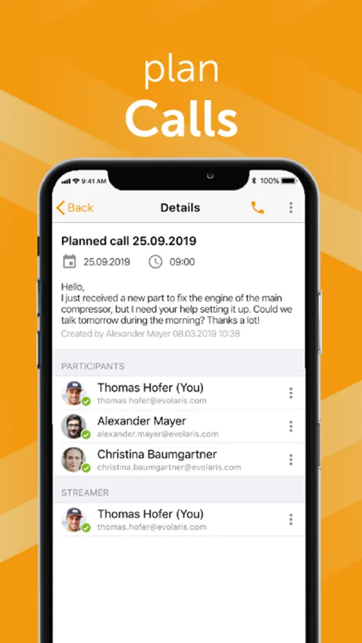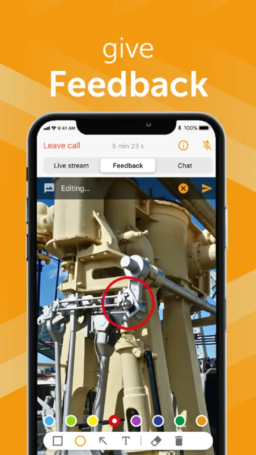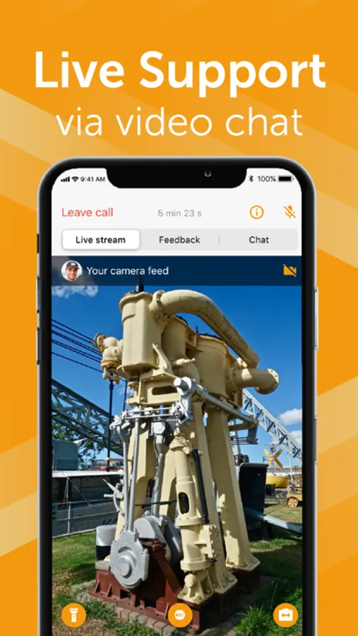 Live video and audio streaming allows specialists to guide the work process and send image-based feedback directly to the mobile device. This allows them to provide location-independent support in real time. Furthermore, the entire support call can be recorded and later used for training sessions. The communication is completely end-to-end encrypted.