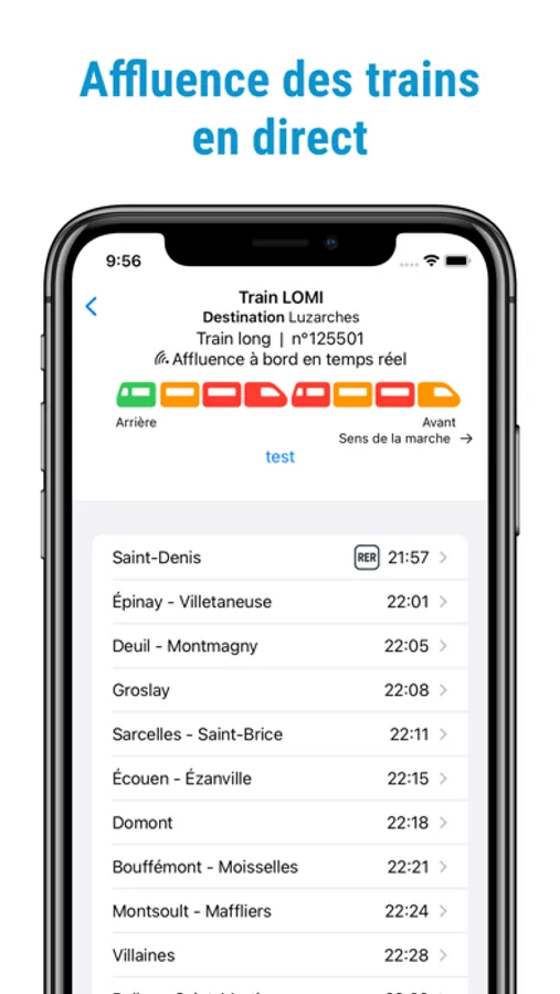 Permet d'avoir rapidement les horaires des prochains RER et Transiliens dans toutes les gares d'Ile-de-France (et frontière), de voir l'affluence en direct, d'ajouter ses gares fréquentées en favoris, d'avoir des informations sur les problèmes en cours...
