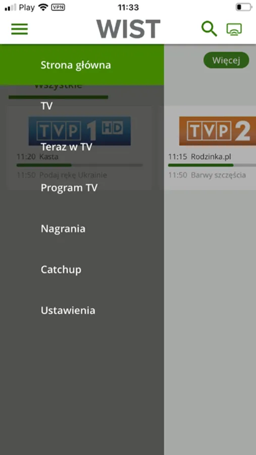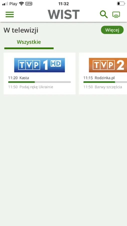 Zmień swój tablet w ekran telewizora. Dzięki usłudze WIST Mobile TV uzyskujesz dostęp do wybranych kanałów telewizyjnych. Aby móc oglądać telewizję online musisz być Abonentem Spółdzielni WIST, posiadać co najmniej pakiet telewizyjny podstawowy oraz wykupioną usługę Internetu.