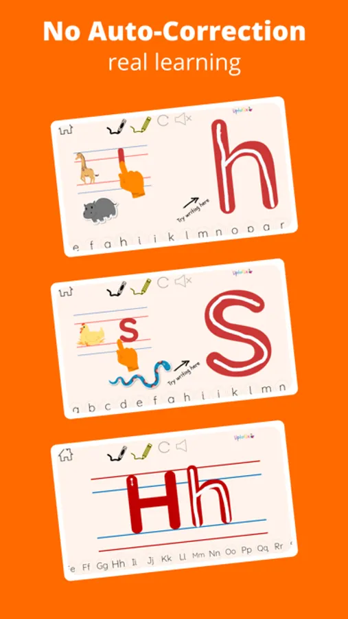 The app does not auto-correct the writing. This app does not give any false sense of achievement to the children. Accurate finger control happens, and children learn to write in a fun and engaging way.