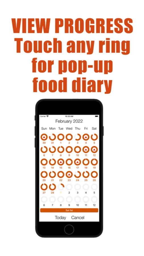 The app will guide you to set your target daily saturated fat intake based on your chosen calorie intake (or the default based on your age and sex) and the percentage of calorie intake you wish to be provided by saturated fat. Both calorie and saturated fat targets can be changed at any time.