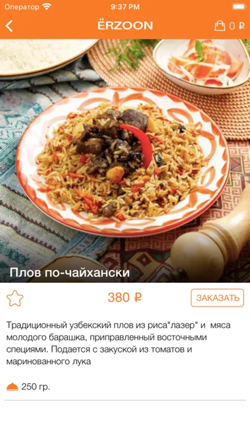 Приложение ресторана «Erzoon» позволяет оформить доставку заказа домой или в офис. С помощью данного приложения можно оформить заказ в 3 клика. Сохранить личную информацию, чтобы в дальнейшем не тратить время на повторный ее ввод в бланк заказа. Добавляйте любимые блюда в избранное и следите за историей своих заказов!