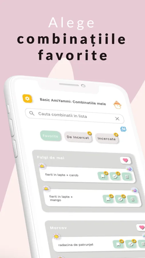 Explorezi combinatiile, le gatesti si le selectezi pe cele favorite direct in aplicatie. Ai acces la ele oricand, rapid si usor.