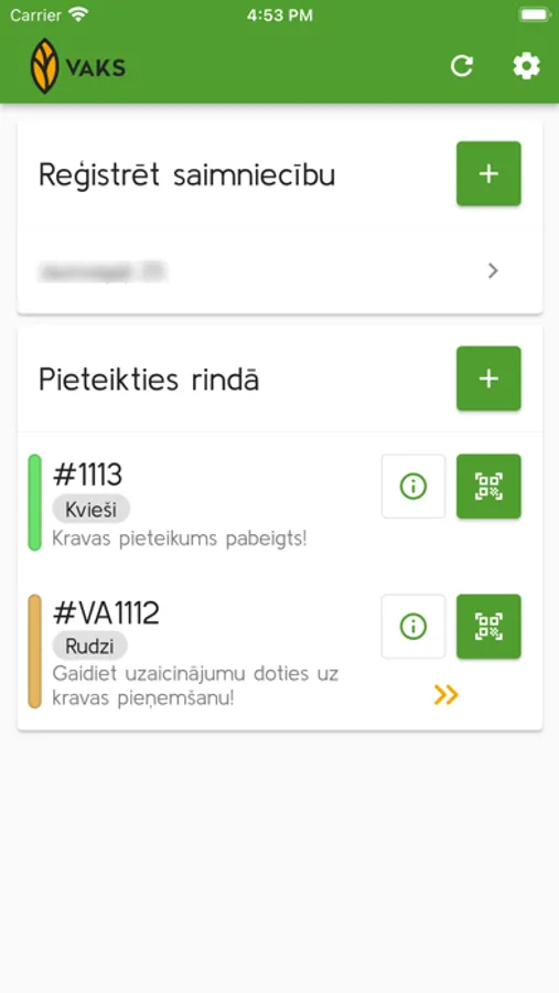 VAKS electronic queue management mobile application for registration of incoming cargo when entering the elevator territory.