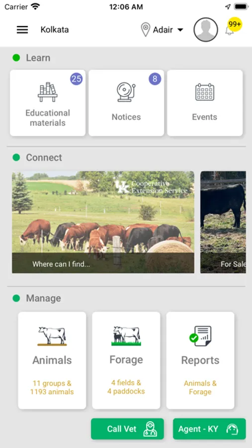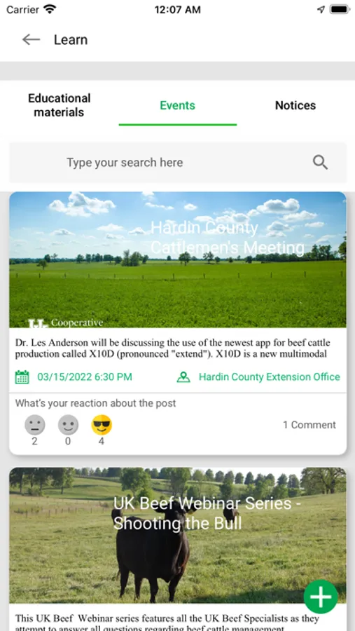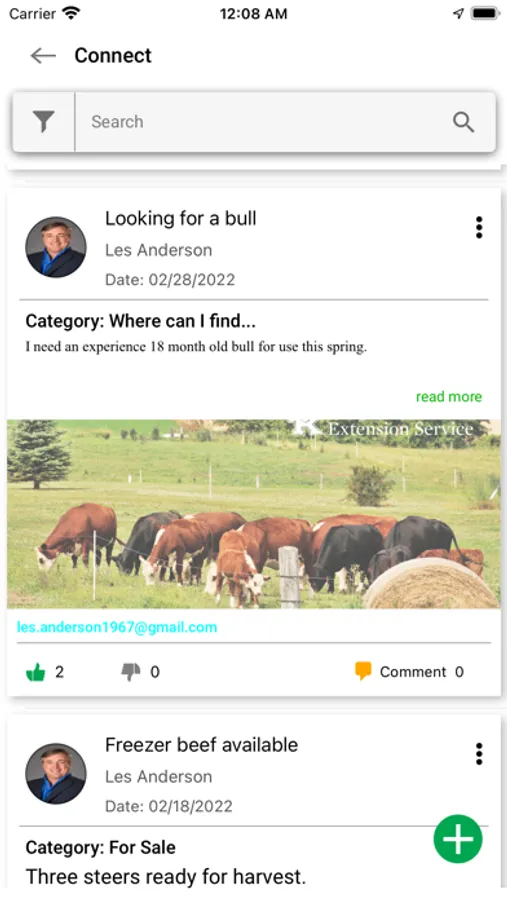Connect: Users will use this component to connect with other beef industry professionals in their county. All users in a county will have access to a message board and can post and communicate about the beef industry, items for sale or purchase, production practices, etc.