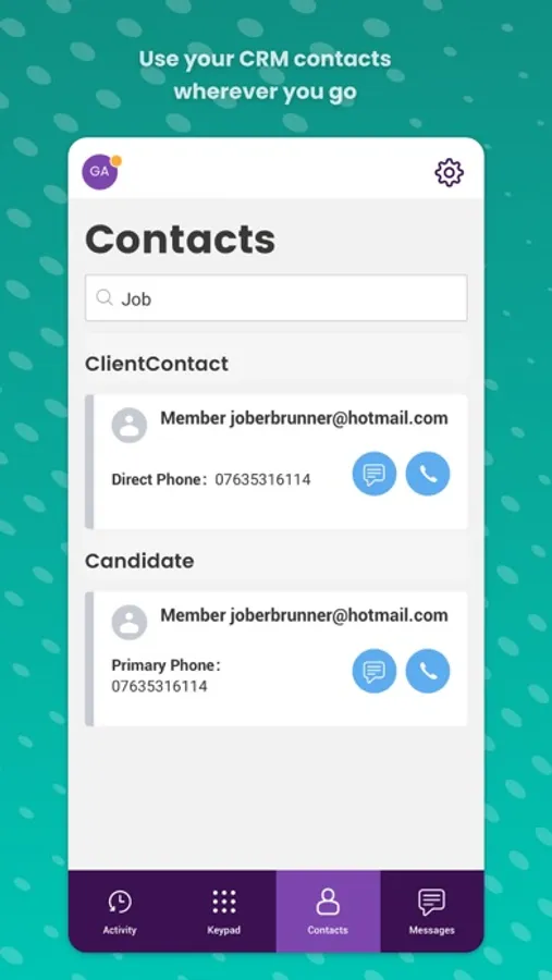 Keep your contact information right at your fingertips. Whether you’re working from home, out of the office or on a business trip - use CloudCall to keep in touch with your contacts and colleagues as data is synced from your CRM system and is instantly available from your device.