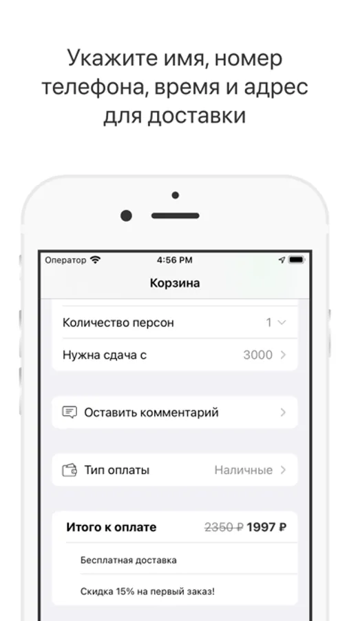 На экране заказа добавьте свою контактную информацию для первого заказа: Имя, Номер телефона и адрес электронной почты, чтобы получать уведомления об оплате.