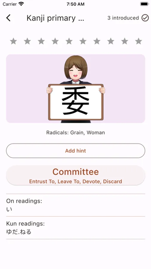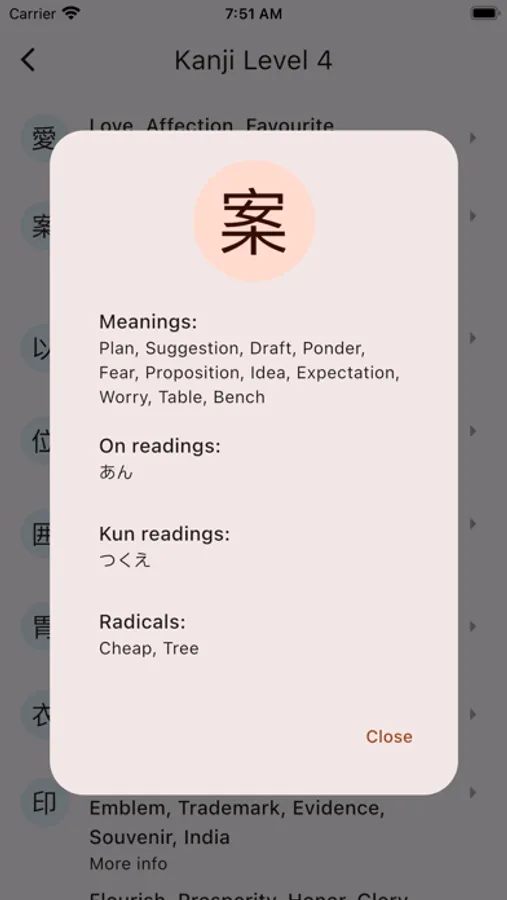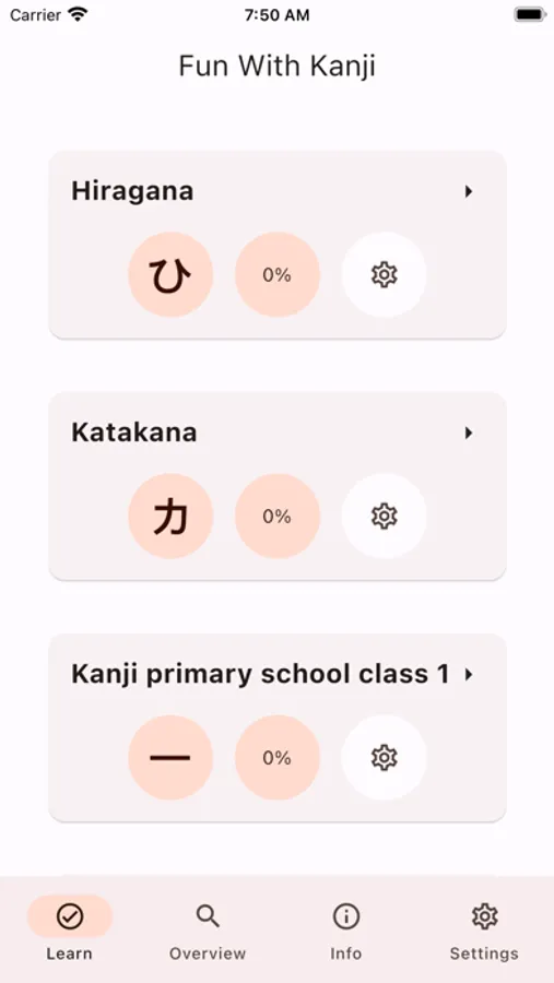 Learn all Japanese characters with only one app: Hiragana, Katakana and (Jōyō-)Kanji, including Kanji Radicals. The app is designed in 11 levels like a game and also includes a dictionary of all Kanas and Jōyō-Kanjis with a full text search.