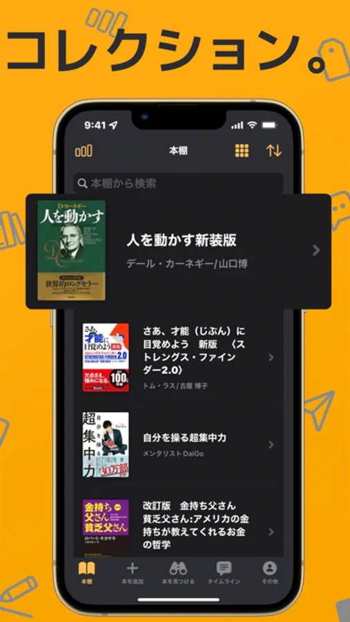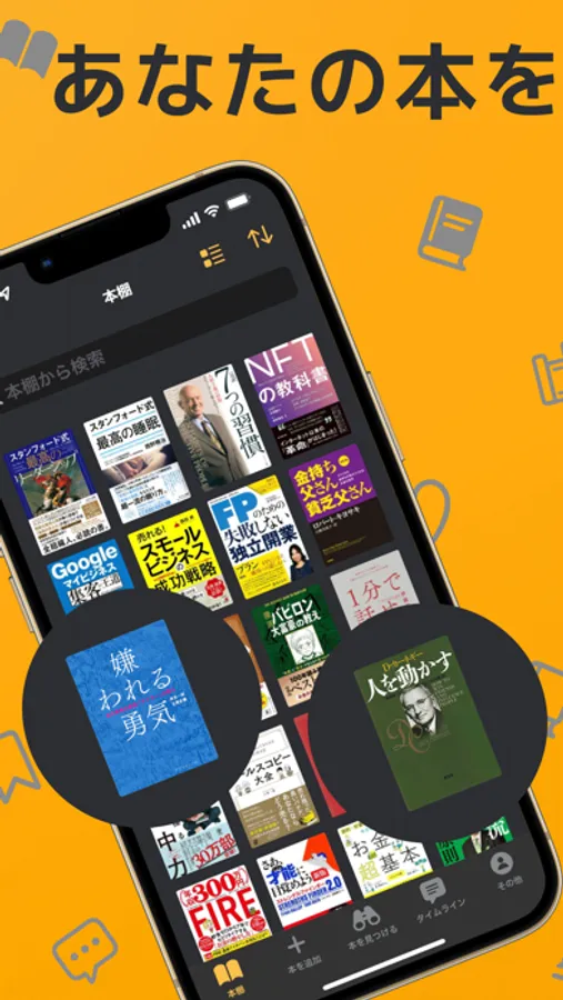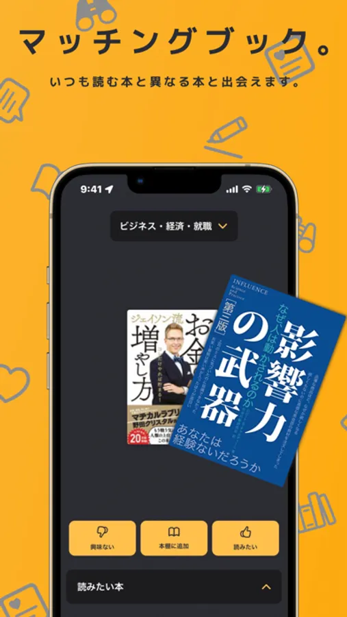 - マッチングアプリのように、本を左右にスワイプして色々な本に出会えます。