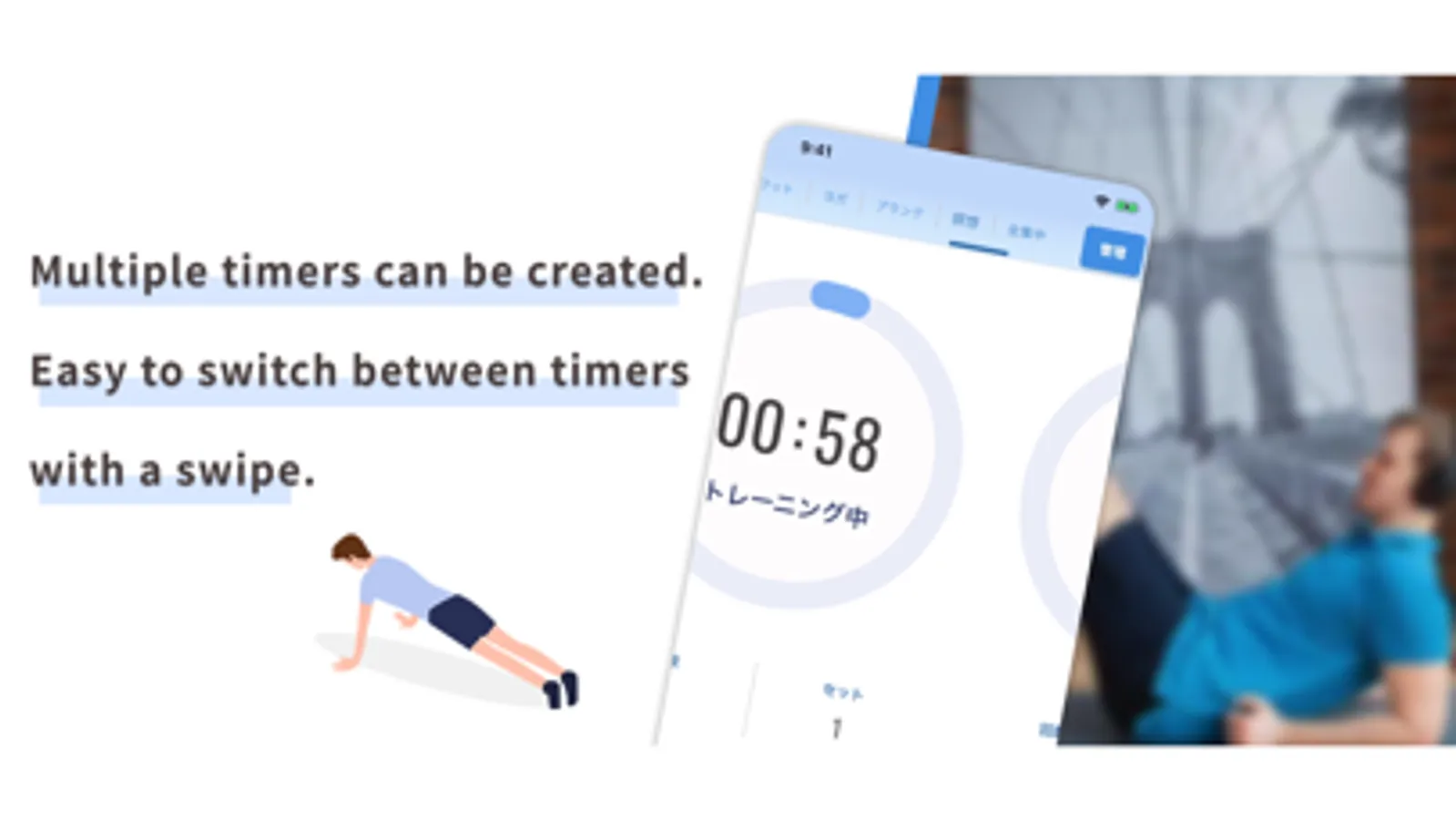 "Training Timer" is a multi-timer app that can be used for muscle training, fitness, study, work, etc. You can easily switch the timer setting that sets repeat and break.