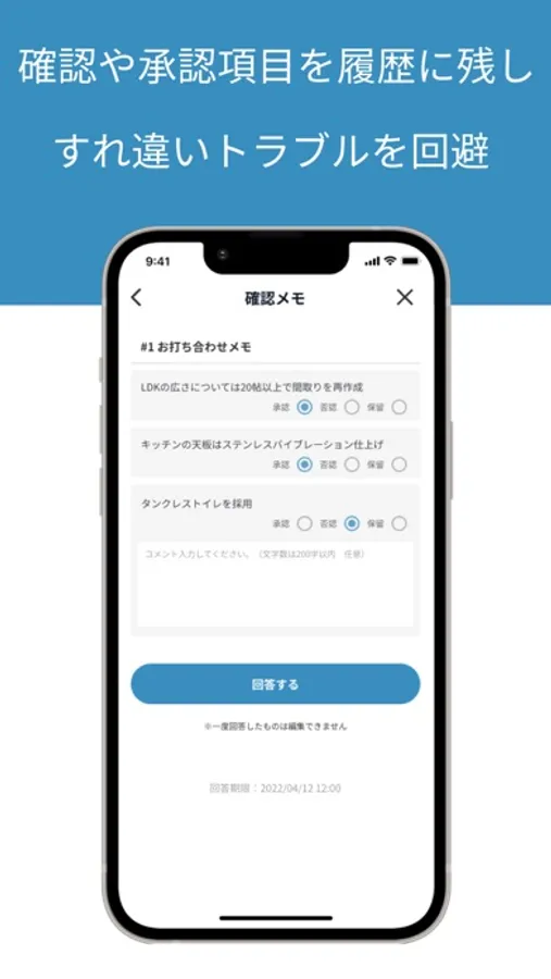 このアプリでは家づくりに関連するコミュニケーションを一括でまとめることにより、後悔のない住まいの実現をお手伝いします。