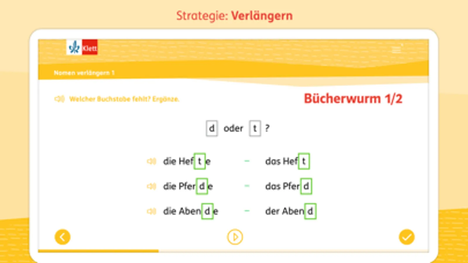 – Die sechs Rechtschreibstrategien des beliebten Bücherwurm Lehrwerks werden in je über 300 interaktiven Übungen pro Schuljahr trainiert.