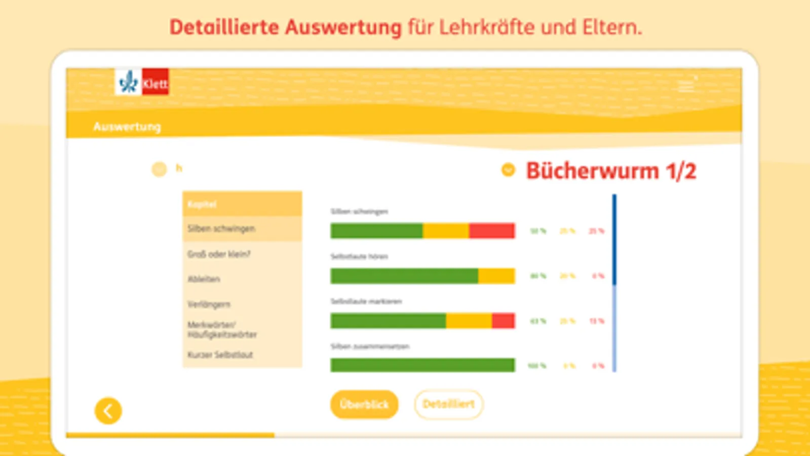 – Ein übersichtlicher Auswertungsbereich hilft Ihnen bei der Einschätzung des Lernstandes der Kinder.