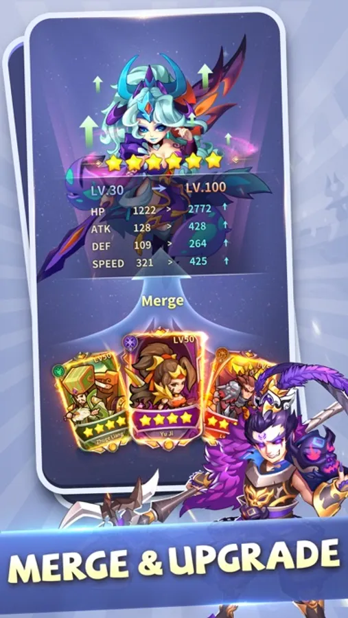 The four major types of generals, warriors, mages, auxiliary, tanks, assassins, and six grades of green, blue, purple, yellow, orange and red, made it flexible to set lineup of occupations with the adjustment of the formation, experience a variety of skills with the timing of the release of the must-have victory over the enemy, to experience the fun of the strategic battle.