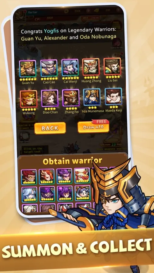 Through the stormy journey of the Three Kingdoms, you will gradually activate General Log in the unique cultivation system, obtain Zhuge Liang, Lu Bu, Guan Yu, Liu Bei and other famous generals, and go forward with Date Masamune, Maeda Keiji, Ashikaga Yoshiteru. Unlock the synergy bonuses, and make use of lineup restraint to obtain the collision of a variety of lineup collocation.