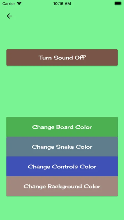 Easily customize the board, background, snake, and controls colors.