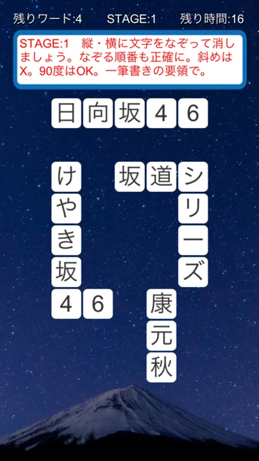 初めの文字から最後の文字まで、画面から指を離さず、一筆書きの要領で!