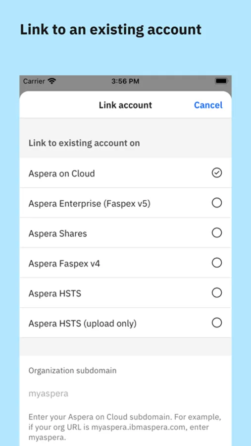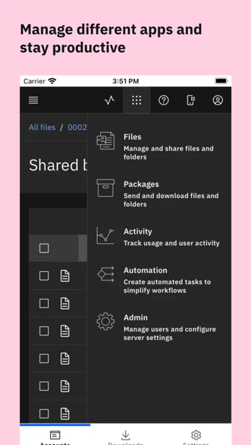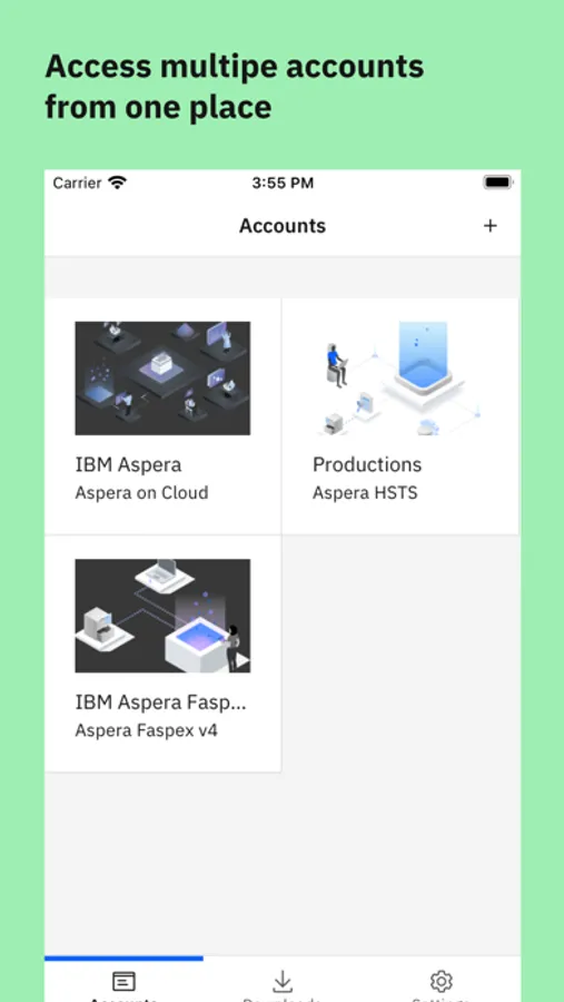 • Simply link your IBM Aspera server account on the app to upload, download, and share files from anywhere.