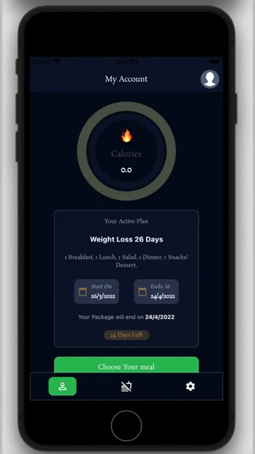 Set your Goals and manage your daily Calories and Subscription Plan from your Smart Phone.