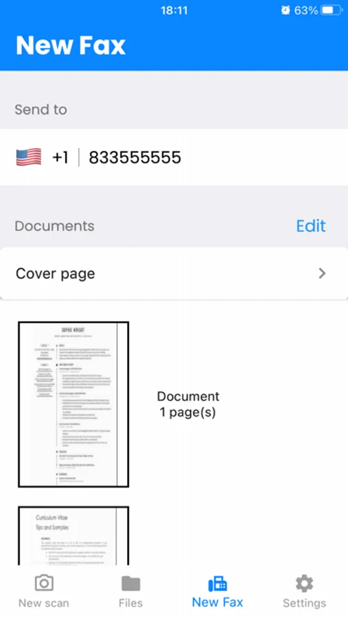 - Send faxes directly from your phone. Simply scan your document, add the recipient's fax number, and send.