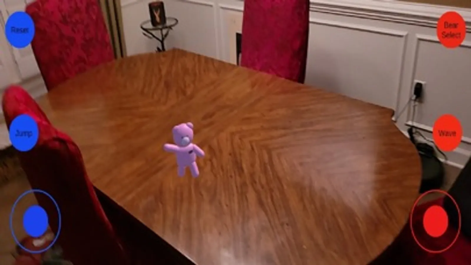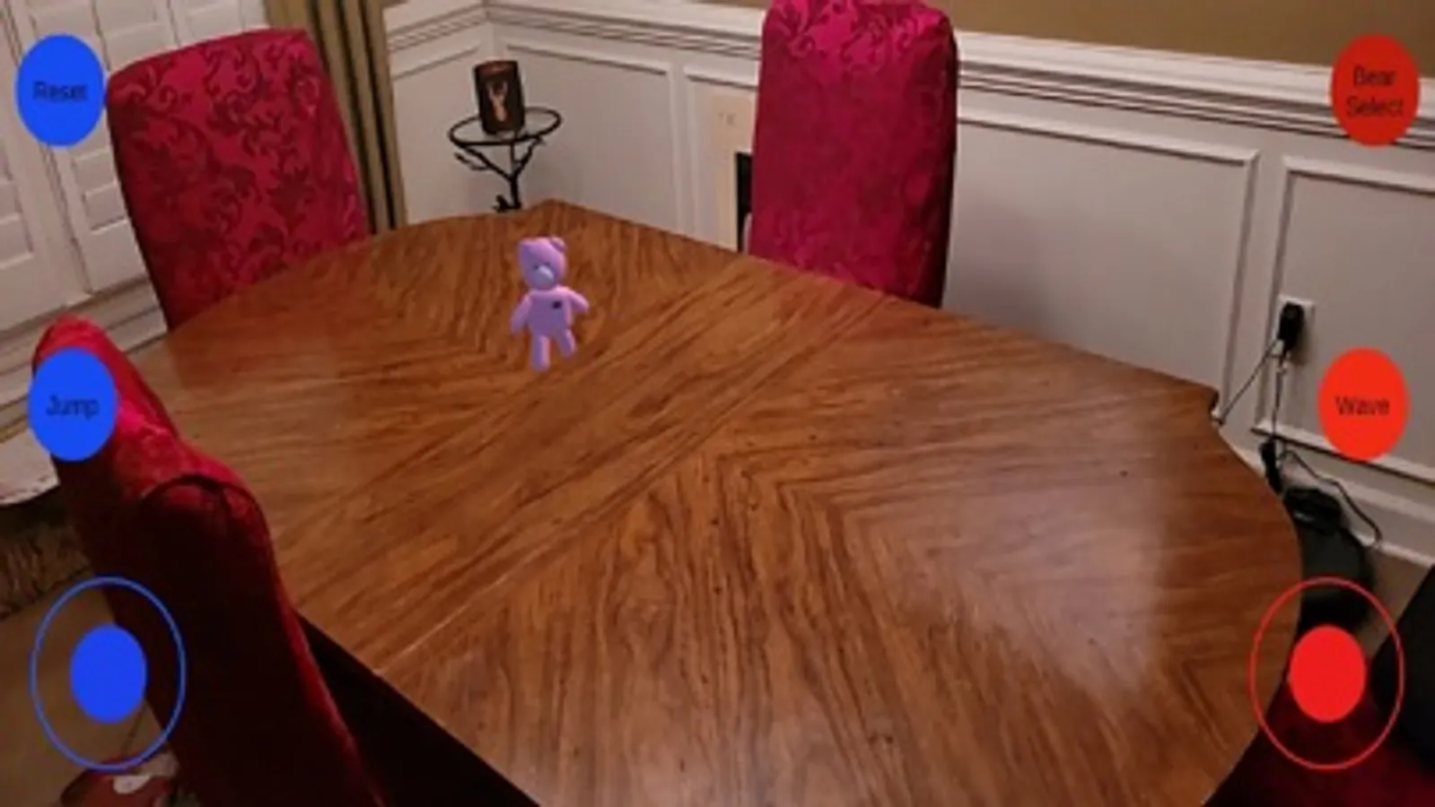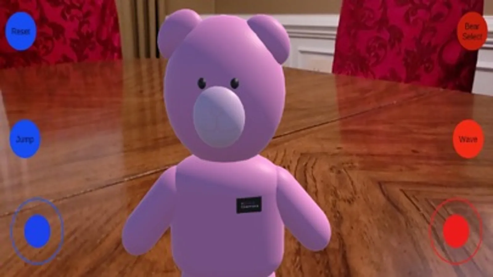 This is just a fun app showcasing some of the capabilities of AR or Augmented Reality. There are three bears that you can choose from. A brown bear named "Pilot Bear", a pink bear named "Cotton Cuddles", and a yellow bear that resembles Winnie the Pooh. These bears can walk around your room, jump, and even wave to you with the touch of a button.