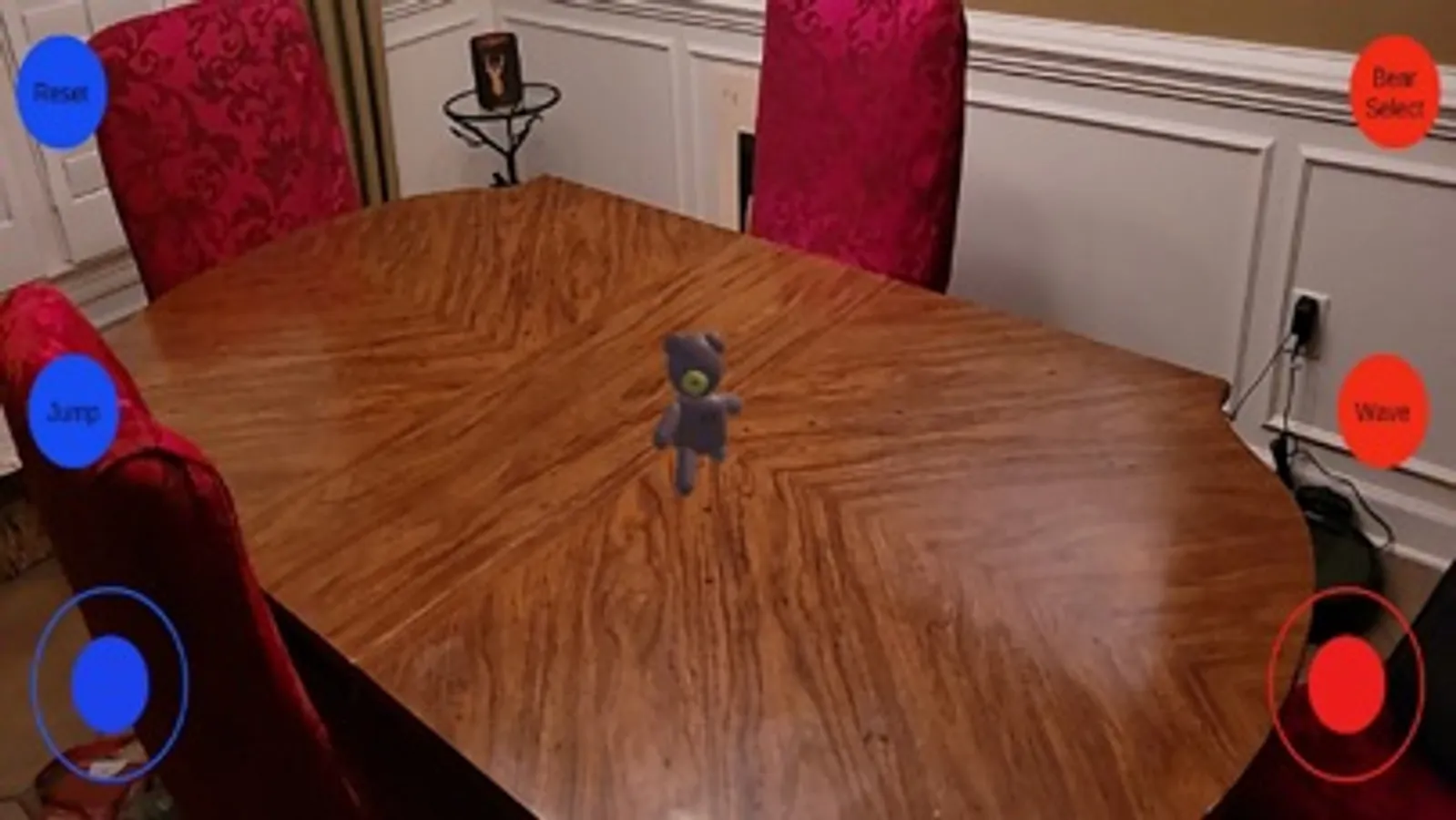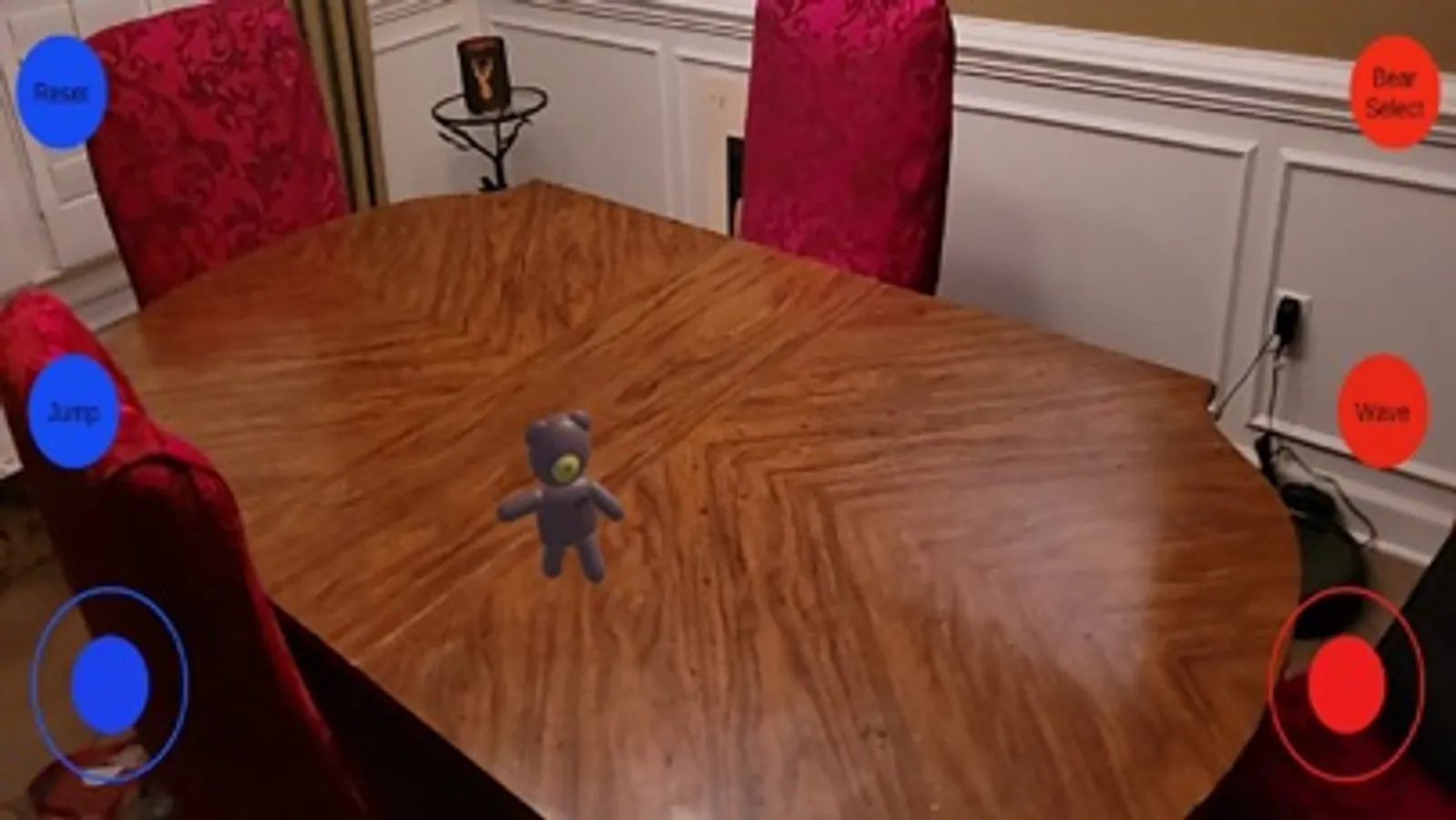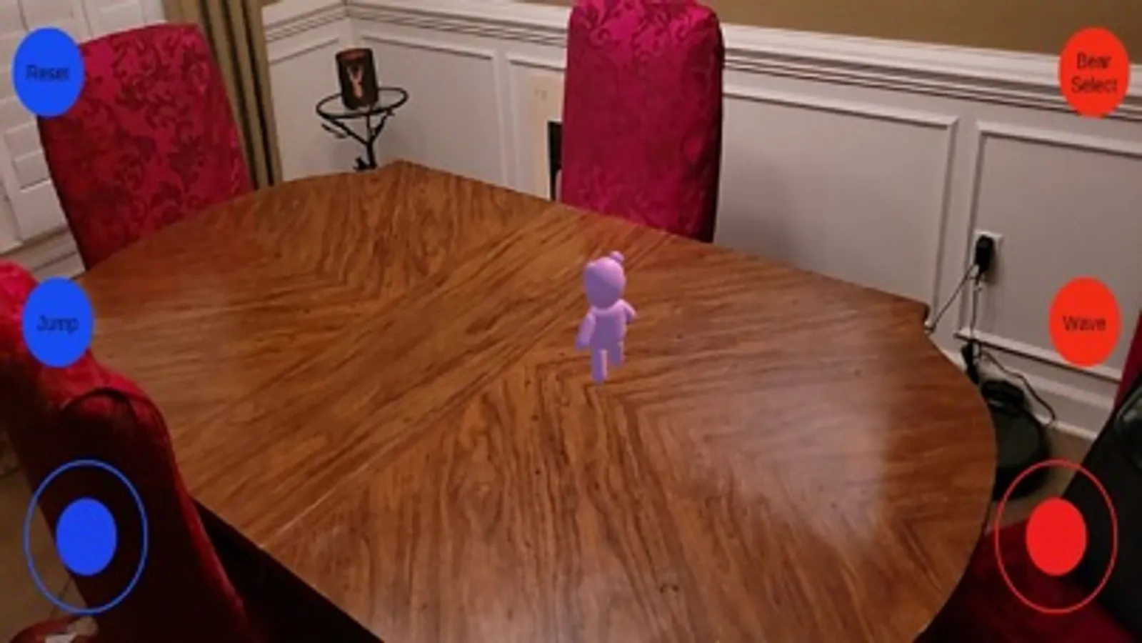 This is just a fun app showcasing some of the capabilities of AR or Augmented Reality. There are three bears that you can choose from. A brown bear named "Pilot Bear", a pink bear named "Cotton Cuddles", and a yellow bear that resembles Winnie the Pooh. These bears can walk around your room, jump, and even wave to you with the touch of a button.