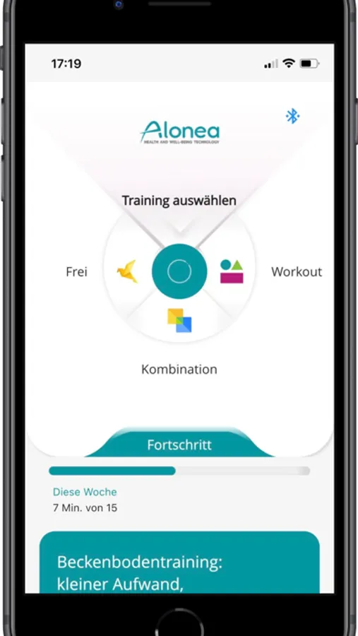 Die PelvicTool-App funktioniert nur zusammen mit dem PelvicTool (zum Bestellen im Alonea-Webshop (https://alonea.ch/de/shop/).