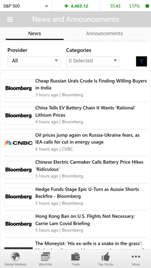 • Custom and smart watch lists to keep a track of your favorite stocks.