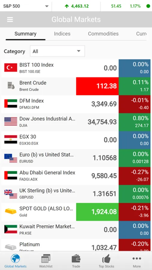 • Global Market Summary to monitor price movements of key market Indices, Commodities and Currencies