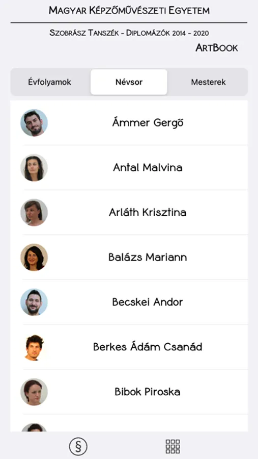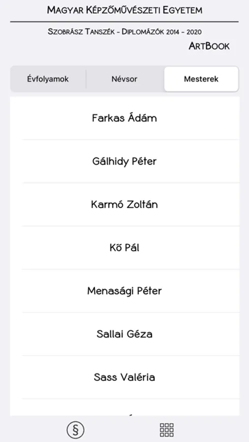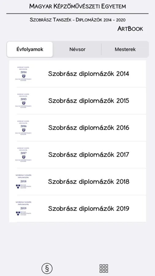 Ez az alkalmazás azon fiatal szobrászművészek diplomamunkáit tartalmazza, akik 2014 és 2019 között diplomáztak a Magyar Képzőművészeti Egyetem (MKE) Szobrász Tanszékén.