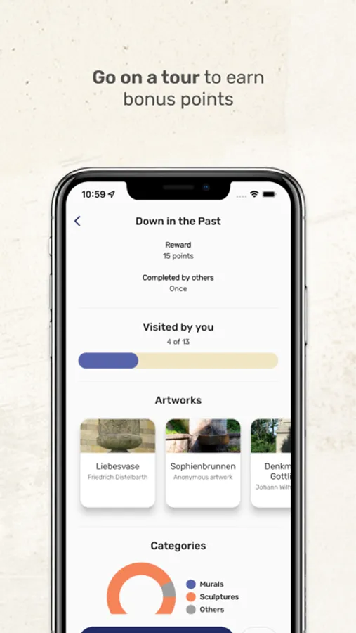 Collect points and get the high score by visiting public murals, sculptures and similar art pieces, and learn a bit more about the art and artists of your town while doing so. Hand-crafted tours help also help you discover specific areas, time periods or topics (while earning you some bonus points).