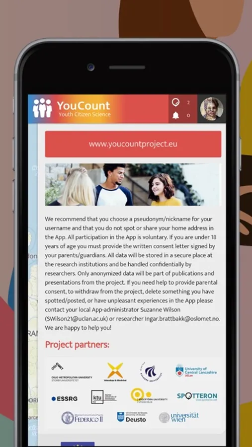 We invite you to be a young researcher and share your experiences with other youths and researchers in the YouCount App. We also invite you to create new knowledge and innovations for social change in cooperation with other youths and local people, organizations, and authorities in your community.