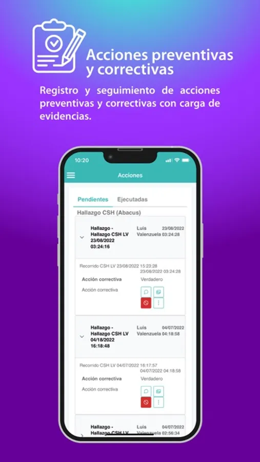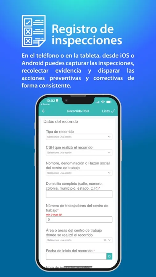 Captura las inspecciones, recolecta evidencia y dispara las acciones preventivas y correctivas de forma consistente.