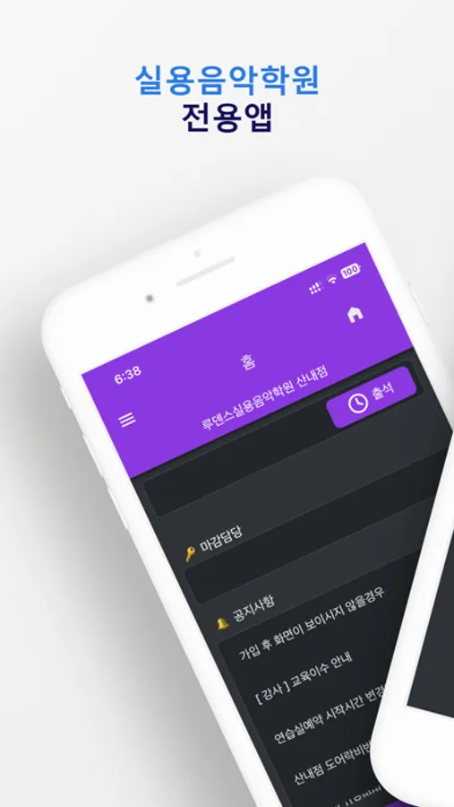 실용음악학원 수강생과 학생들을 위한 전용앱입니다.