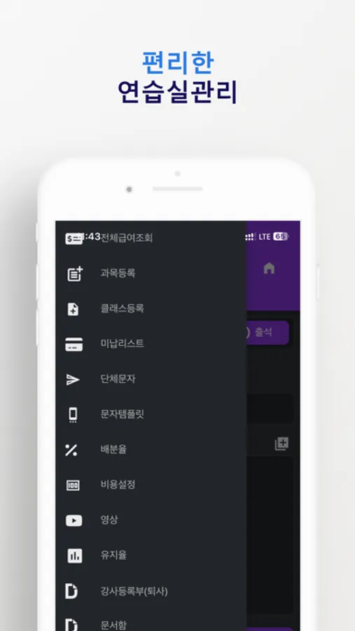강의일정과 수강신청, 연습실예약등 학원시설을 편리하게 사용할 수 있는 기능들을 담고 있습니다.