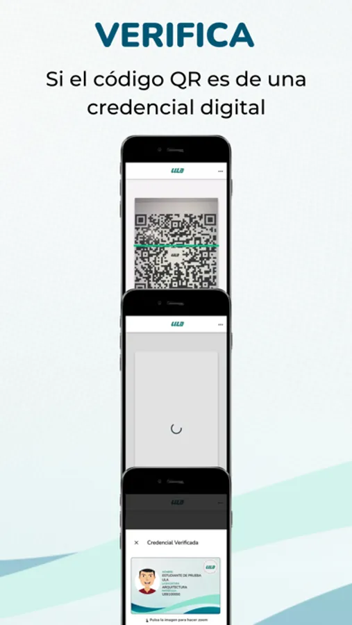 Verificar a un estudiante, docente o administrativo de la Universidad Latinoamericana nunca había sido tan sencillo, Escáner ULA es un validador digital el cual validará si el identificador proporcionado por el usuario es válido o no, de ser válido mostrará una copia de la credencial digital de la persona verificada, de caso contrario se mostrará un alerta avisando que el código proporcionado no tiene validez en la la institución, sin necesidad de tener algún contacto físico.