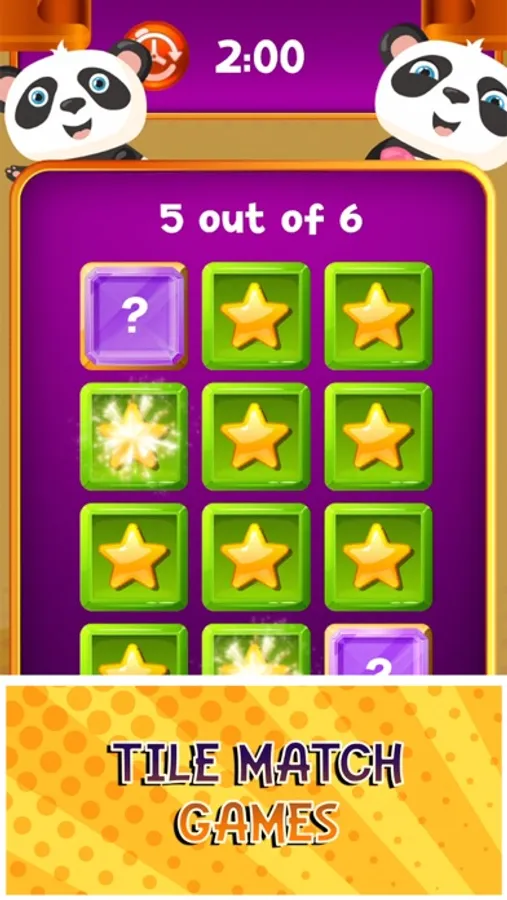 Match Games: Compare tiles and match before the time runs out! Choose a difficulty setting to match all tiles within :30 seconds. The lowest are 3 total match and go up to 15.