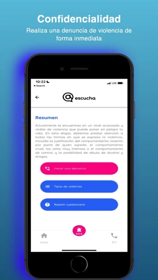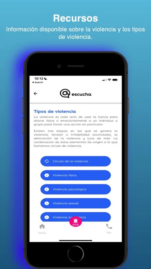 Es una aplicación de descarga y uso gratuito, cuya finalidad es la de de orientar y apoyar a quienes se encuentren en una situación de peligro debido a la violencia por uno o varios terceros. Esto, mediante la disposición de recursos de información y acción para empoderar a quienes enfrentan esta situación.