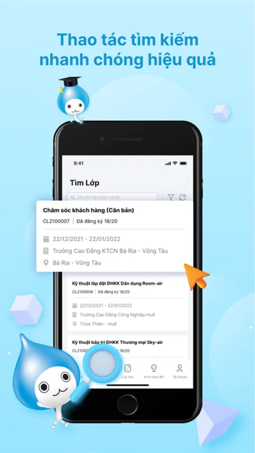 - Bạn có thể tìm kiếm lớp học một cách nhanh chóng phù hợp với nhu cầu theo thời gian và địa điểm