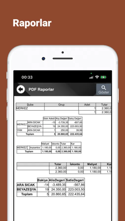 Uygulama içinde stoklarınızı yönetebilirsiniz, cari hesapları görüntüleyebilir ve hareketlerine bakabilirsiniz.