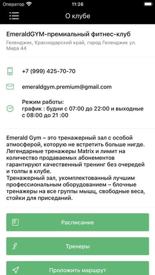 С помощью приложения вы можете следить за новостями, расписанием клуба, оперативно получать информацию об изменениях в расписании и специальных предложениях, продлевать карты, приобретать и записываться на тренировки в единственном премиальном фитнес-клубе в Геленджике, оборудование Matrix
