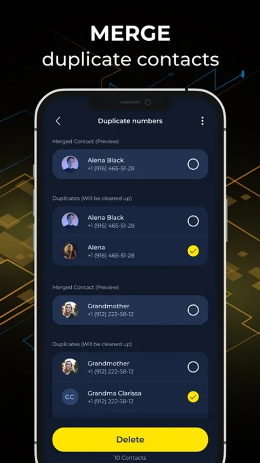 It will also help you create a contact list united by anything: name, number or email. Then you can preview them and delete whatever you don't need.
