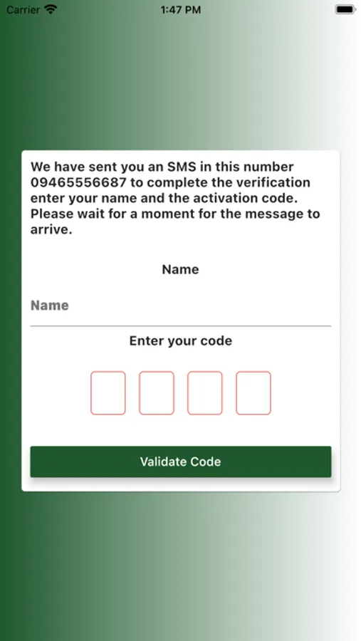 • Authentication – Users are sent a code to their mobile number to ensure that only them can see the information relating to their account.