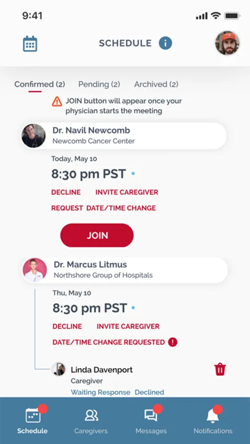 Haploscope is a tele-oncology mobile app that allows cancer patients and their caregivers to communicate with their oncologists and cancer clinics via virtual visits using in-app video conferences. Cancer patients are able to accept virtual appointments from their physicians, manage their meeting schedules, and track their previous conversations. Patients are also able to communicate with their doctors using in-app messaging real time. Caregivers can join virtual appointments once invited by the patients. This app integrates three parties in a care management platform using tele-health services.