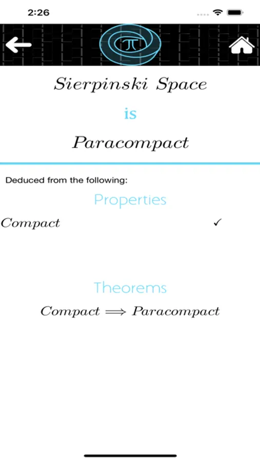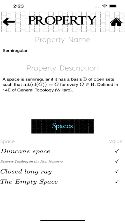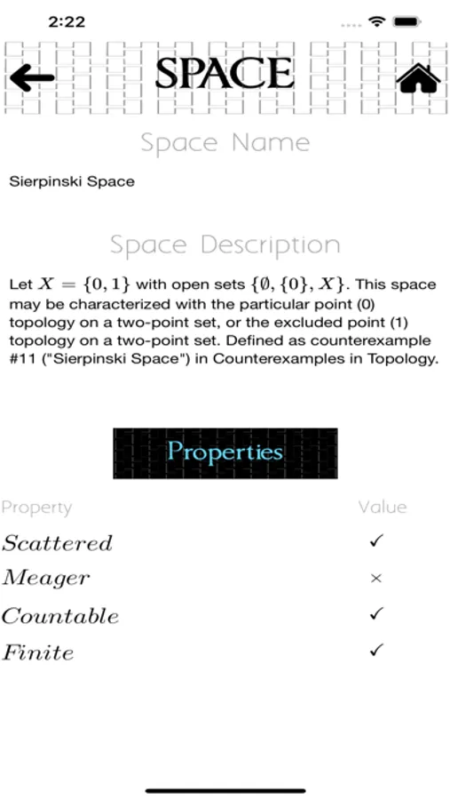 - Space, Theorem and Property descriptions.