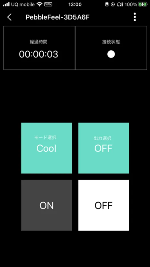 A smartphone with this app is connected to the Pebble Feel, a personal air conditioner via Bluetooth, switching between heating/cooling and intensity is available.