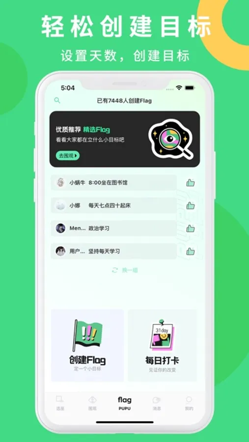 Flag是一个帮助用户创建Flag与目标达成、记录成长与变化的内容社区平台。