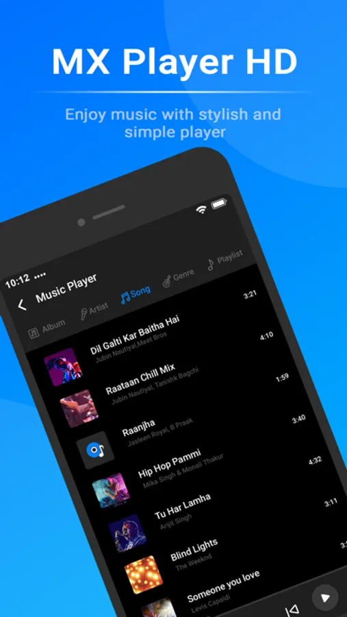 Now MX Player - 4K Mp4 HD Player comes up with some new features like a playlist with which this MP4 Hd player app allows you to create a playlist of your favorite songs. For this just go to music in MXPlayer - 4K Mp4 HD Player and tap on 3 dots on the right side of song/music and tap on creating a playlist.