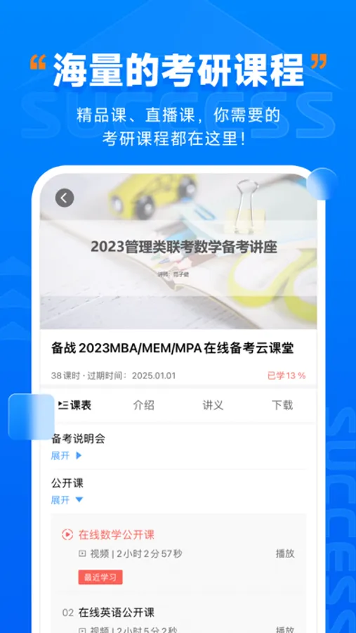 考研课程:点播/直播课程随身学,离线缓存,随时随地无网学习!